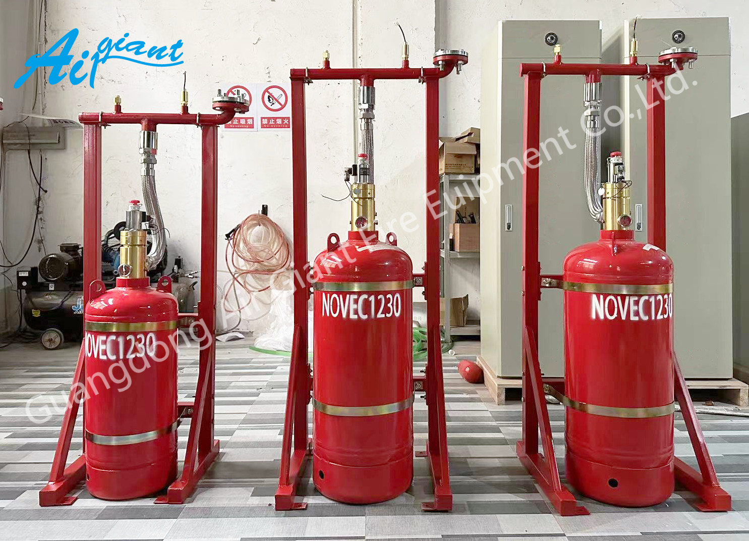 دستگاه اطفاء حریق Novec1230 شبکه لوله ای از اجزای زیر تشکیل شده است: عامل Novec1230، سیلندرهای Novec1230، شیرهای کانتینر، شیلنگ های انعطاف پذیر، شیرهای یک طرفه جریان مایع، یک مجموعه منیفولد، یک شیر اطمینان، سوئیچ فشار، دستگاه(های) محرک نیتروژن، قاب دستگاه محرک، لوله کنترل گاز، شیرهای یک طرفه جریان گاز (بستگی دارد)، شیرهای انتخابی (بستگی دارد)، یک جفت زانویی و فلنج، نازل. اگر یک دستگاه برای محافظت از چندین منطقه محافظت شده نیاز باشد، ترکیب آن به شرح فوق است. با این حال، اگر یک سیستم فقط نیاز به محافظت از یک منطقه محافظت شده داشته باشد، شیر یک طرفه جریان گاز و شیر انتخابی باید از ترکیب آن حذف شوند.