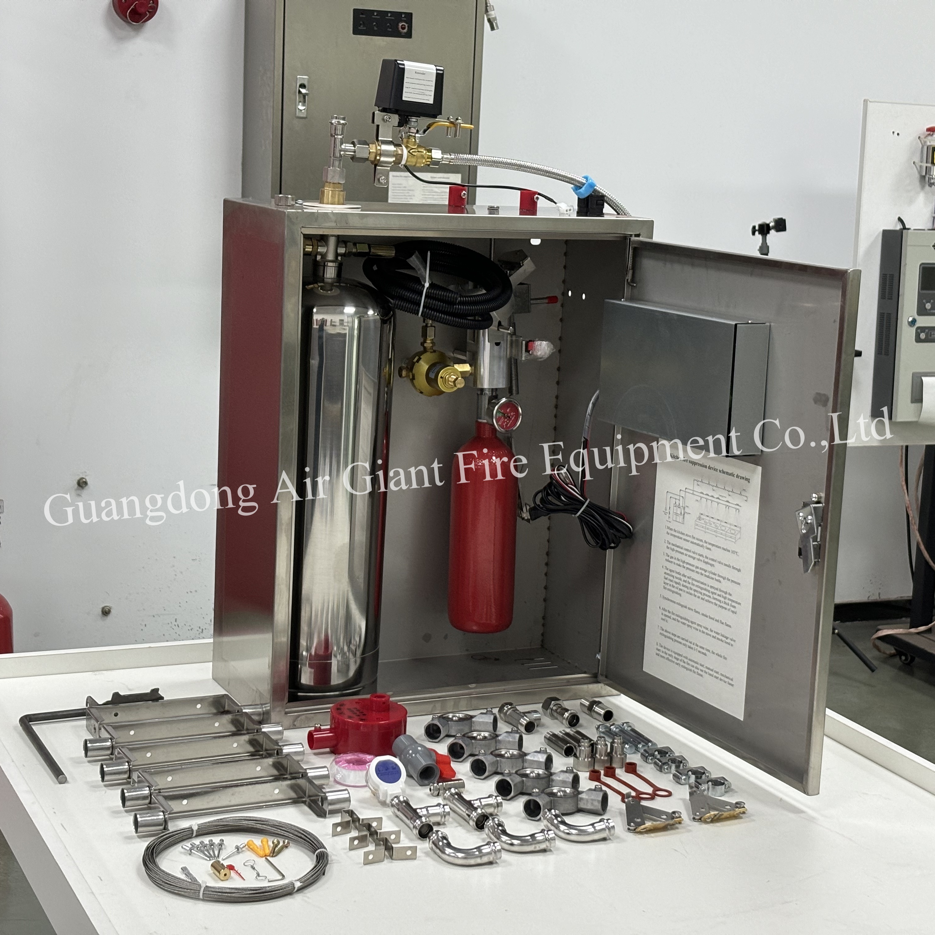 این دستگاه می تواند نظارت، تشخیص و فعال سازی اتوماتیک 24 ساعت در روز را با زمان اسپری کوتاه از ماده خاموش کننده آتش و خاموش کردن سریع در عرض 5 ثانیه به دست آورد.در هنگام خاموش کردن آتشاین محصول به صورت مکانیکی شروع می شود و نیازی به برق ندارد. برای جلوگیری از خوردگی، تمام مواد اولیه از فولاد ضد زنگ یا مس ساخته شده اند.هنگام نصب و استفادهنصب تعداد و موقعیت نوزل ها انعطاف پذیر است و الزامات مشخصات را برآورده می کند.طراحی و نصب در محل بر اساس تعداد سوراخ های آتش سوزی اجاق انجام می شودماده خاموش کننده آتش سازگار با محیط زیست، آسان برای تمیز کردن، و مناسب برای تمیز کردن روزانه در همان زمان،دستگاه خاموش کننده آتش بر روی دیوارهای اطراف منطقه محافظ نصب شده است، که فضای زمینی منطقه حفاظت شده را اشغال نمی کند.