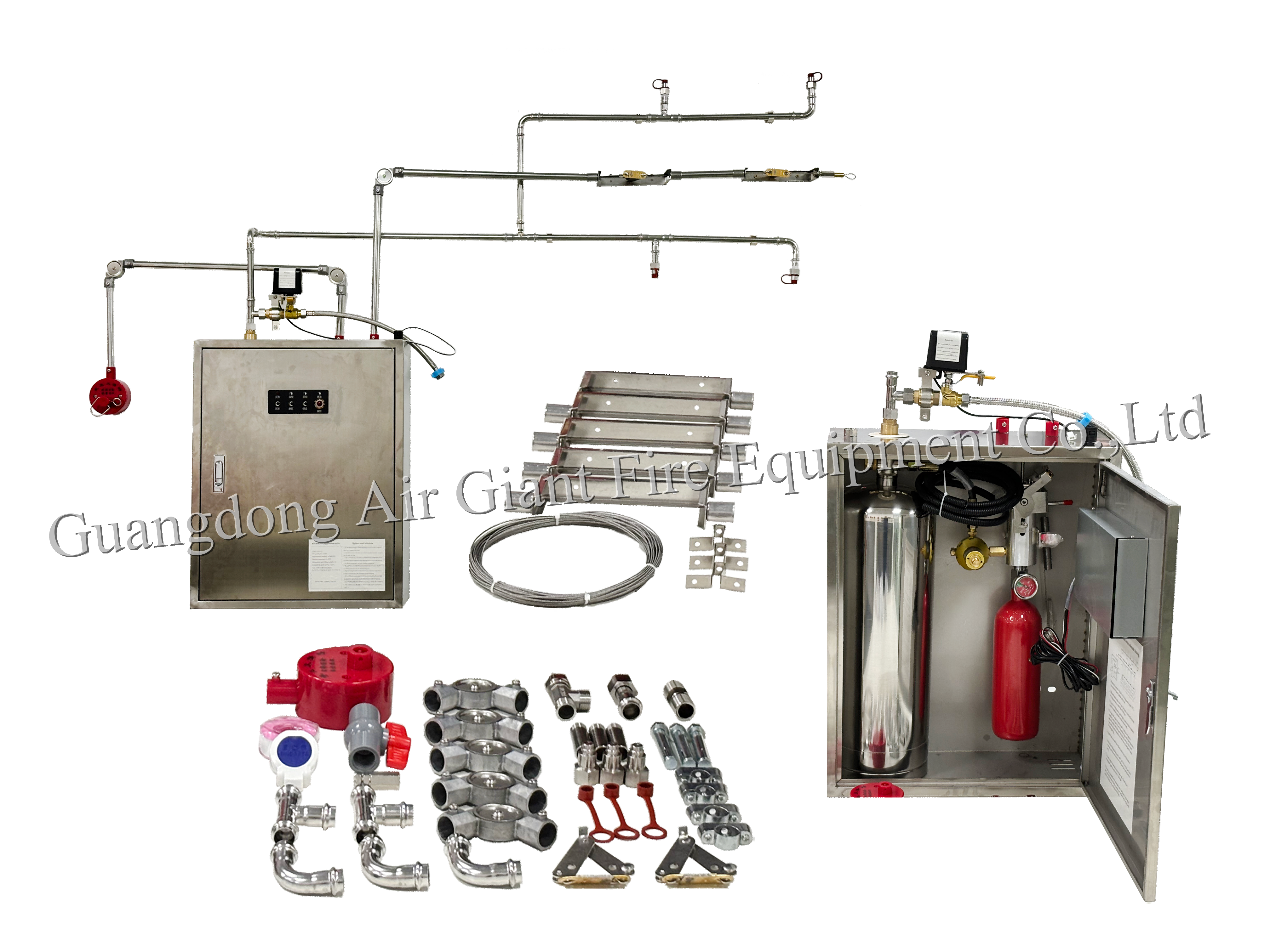 برای مقابله بهتر با آتش سوزی های معمول روغن آشپزخانه در آشپزخانه ها، سیستم خاموش کننده آتش مجهز به یک عامل مخصوص خاموش کننده آتش است که برای روغن های آشپزخانه طراحی شده است. این عامل غیر سمی است.بدون بوی، غیر آلاینده و آسان برای تمیز کردن، اطمینان از ایمنی در حالی که همچنین در نظر گرفتن تمیز کردن پس از استفاده است.می تواند به سرعت آتش سوزی ناشی از مواد قابل احتراق مانند چربی را خاموش کند و به طور موثر از آتش جلوگیری کند.