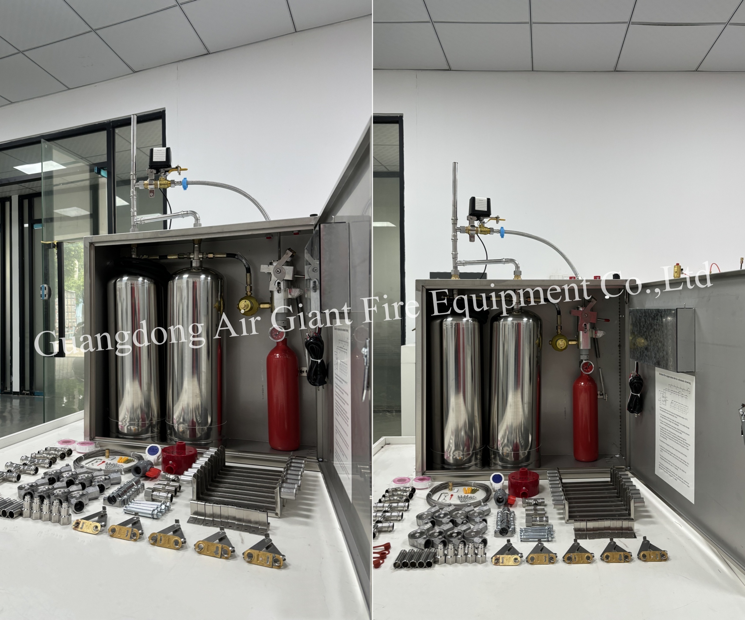 6. واحد کنترل مکانیکی/برقی: سیگنالها را از حسگرها دریافت میکند، به طور خودکار گاز/برق را قطع میکند (از طریق یک شیر متصل) و آزادسازی مواد اطفاء حریق را فعال میکند.